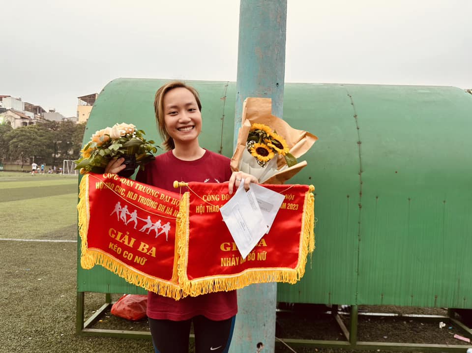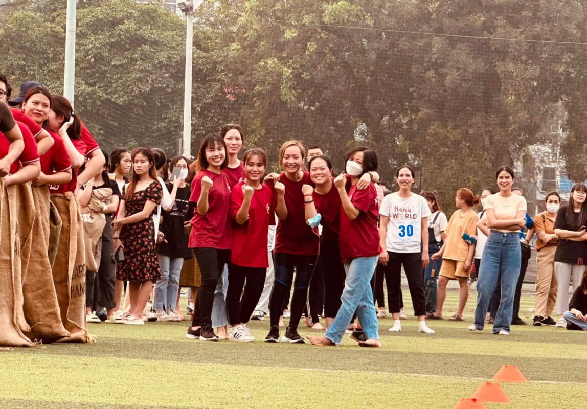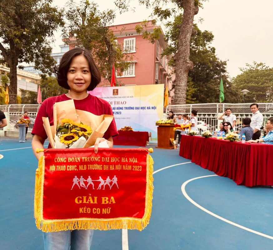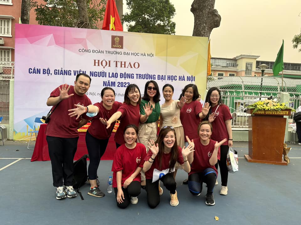 Chào mừng và chúc mừng các cán bộ, giảng viên khoa Quốc tế học đã đạt giải cao tại Hội thao 2023 của HANU. Nối tiếp chiến thắng kéo co, hôm nay đoàn chúng ta thi đấu bản lĩnh, thành công, giành giải cao tại cuộc thi Kéo co nữ và Nhảy bao bố của Hội thi này.