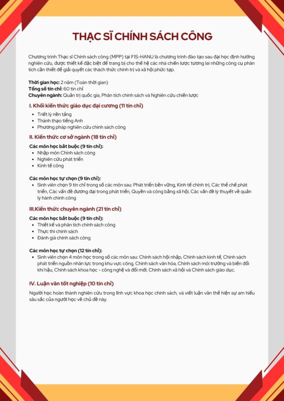 CHƯƠNG TRÌNH ĐÀO TẠO THẠC SĨ CHÍNH SÁCH CÔNG