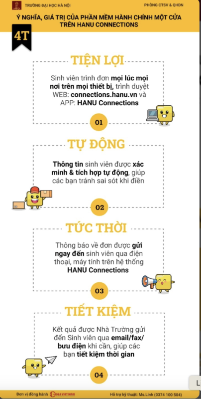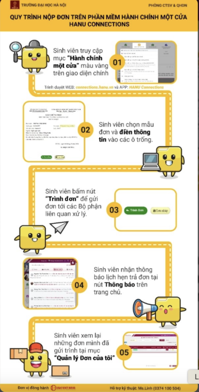 Với dịch vụ này, sinh viên có thể gửi mẫu đơn hành chính trực tuyến mà không phải đến trực tiếp, tự theo dõi được các bước thực hiện yêu cầu của mẫu đơn đã gửi…