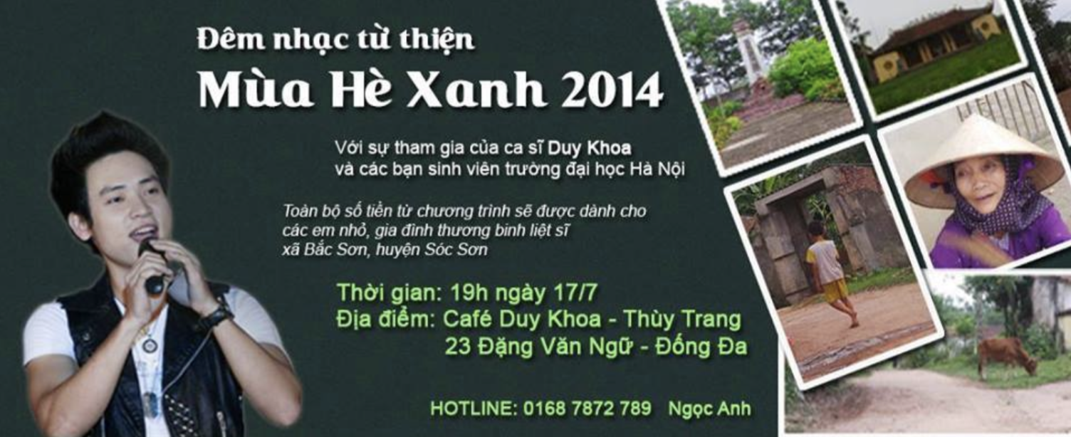 Chiến dịch tình nguyện Mùa hè xanh 2014 – “Bước chân tình nguyện” do Liên chi Đoàn khoa Quốc tế học, khoa Tiếng Bồ Đào Nha và khoa Công nghệ Thông tin thuộc Trường Đại học Hà Nội (HANU) phối hợp tổ chức đã được triển khai trong 10 ngày, từ 19/07 đến 28/07/2014, với sự tham gia của đông đảo sinh viên tình nguyện.
