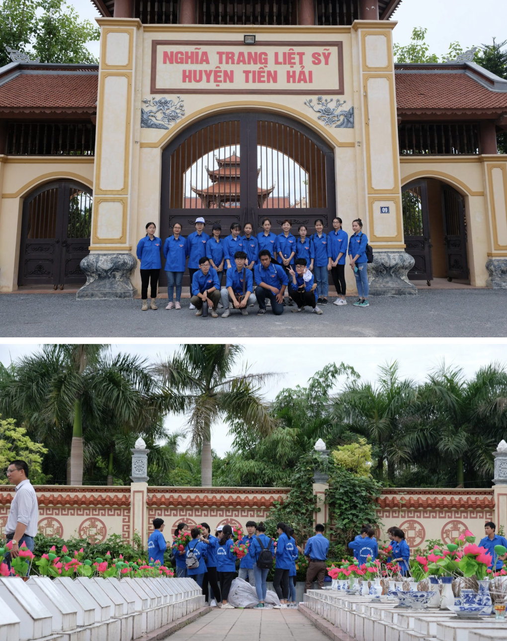 Một nội dung mang ý nghĩa sâu sắc của chương trình là lễ dâng hương tưởng niệm và thắp nến tri ân tại nghĩa trang liệt sĩ địa phương, được tổ chức nhân dịp kỷ niệm Ngày Thương binh – Liệt sĩ. Hoạt động diễn ra trong không khí trang nghiêm, thể hiện lòng biết ơn của đoàn tình nguyện đối với những hy sinh của các anh hùng liệt sĩ vì độc lập, tự do của Tổ quốc.