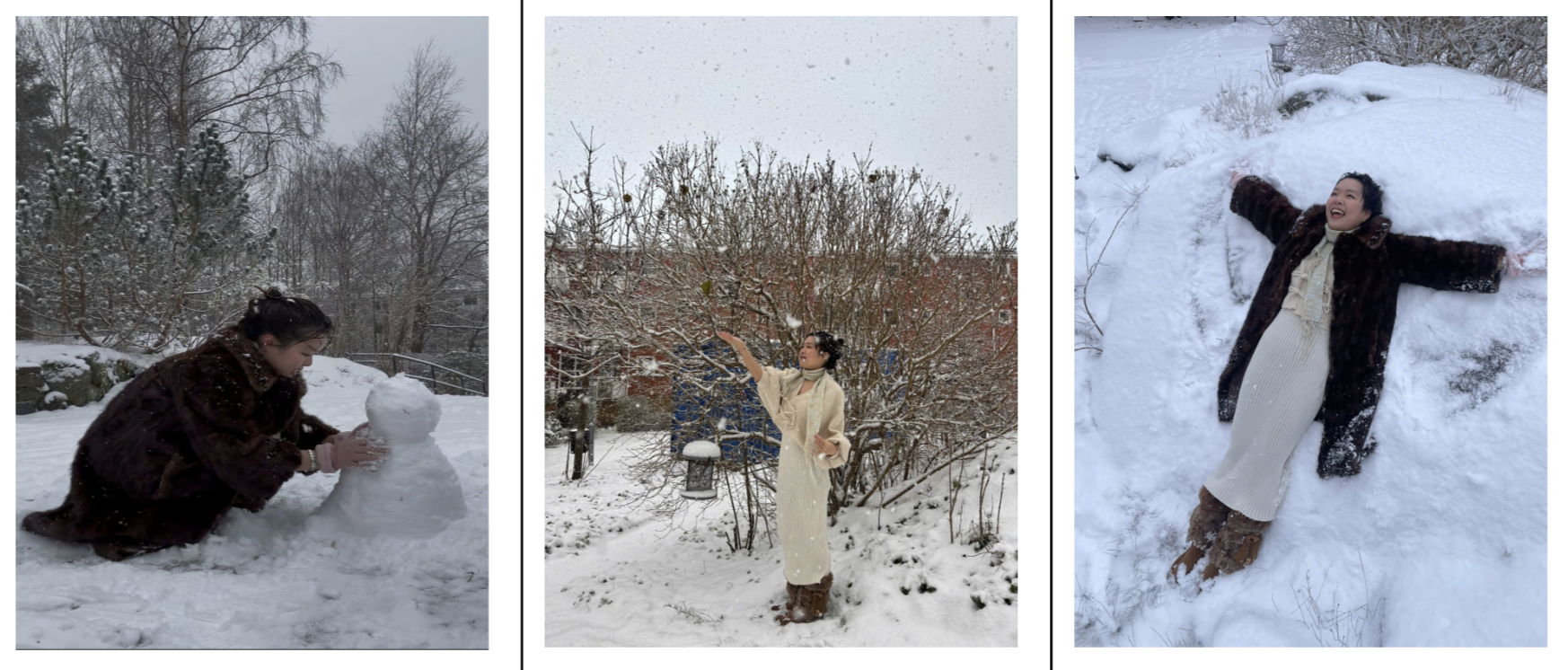 Mình vội vã mặc thêm quần áo, chạy ào ra sân như sợ khoảnh khắc ấy sẽ biến mất. Tuyết đầu mùa ở Gothenburg là điều đẹp đẽ và lung linh nhất mà mình có thể nghĩ ra. Mình hát vang “Do you wanna build a snowman”, in dấu chân lên nền tuyết trắng, ném tuyết, rồi nằm dài trên tuyết, làm tất cả những điều mà cô bé 8 tuổi ngày đó từng ước ao. Trong một khoảnh khắc, mình biết rằng đứa trẻ trong mình hạnh phúc lắm. Và mình đã được biết tuyết đầu mùa không chỉ lãng mạn như trong các bài hát mà ở Gothenburg, tuyết còn mềm mại, êm ái như kẹo bông gòn.