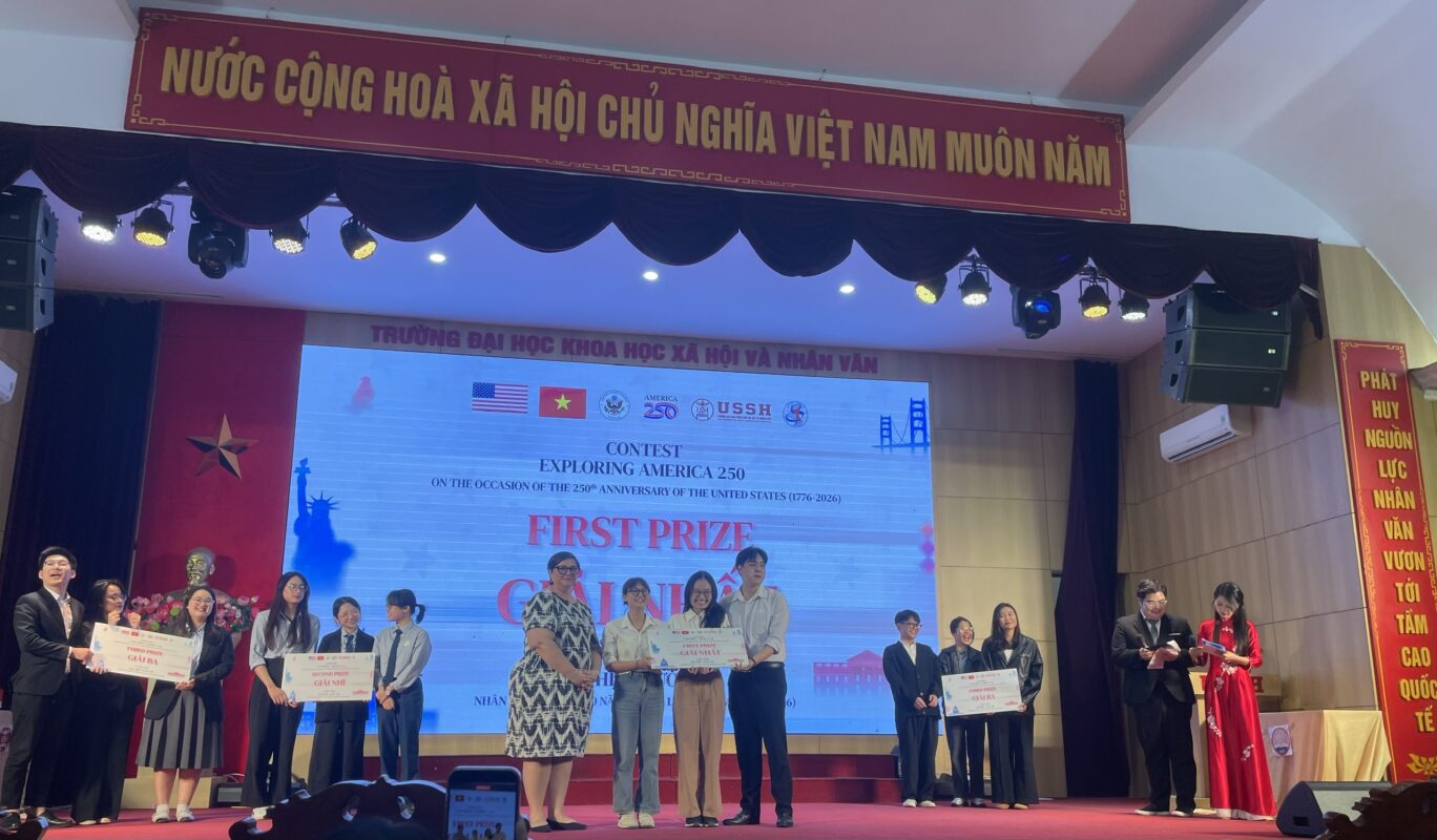 Chiều ngày 25/11/2025, nhóm 3 sinh viên Khoa Quốc tế học (Trường Đại học Hà Nội) đã có những màn thi đấu kịch tính, ấn tượng tại Cuộc thi Exploring America 250 (Tìm hiểu nước Mỹ nhân dịp 250 năm thành lập) diễn ra tại Trường Đại học Khoa học Xã hội và Nhân văn. Đây là cuộc thi do Đại sứ quán Hoa Kỳ tại Việt Nam tài trợ, nằm trong khuôn khổ chuỗi sự kiện kỷ niệm 30 năm thiết lập quan hệ ngoại giao Việt Nam – Hoa Kỳ.